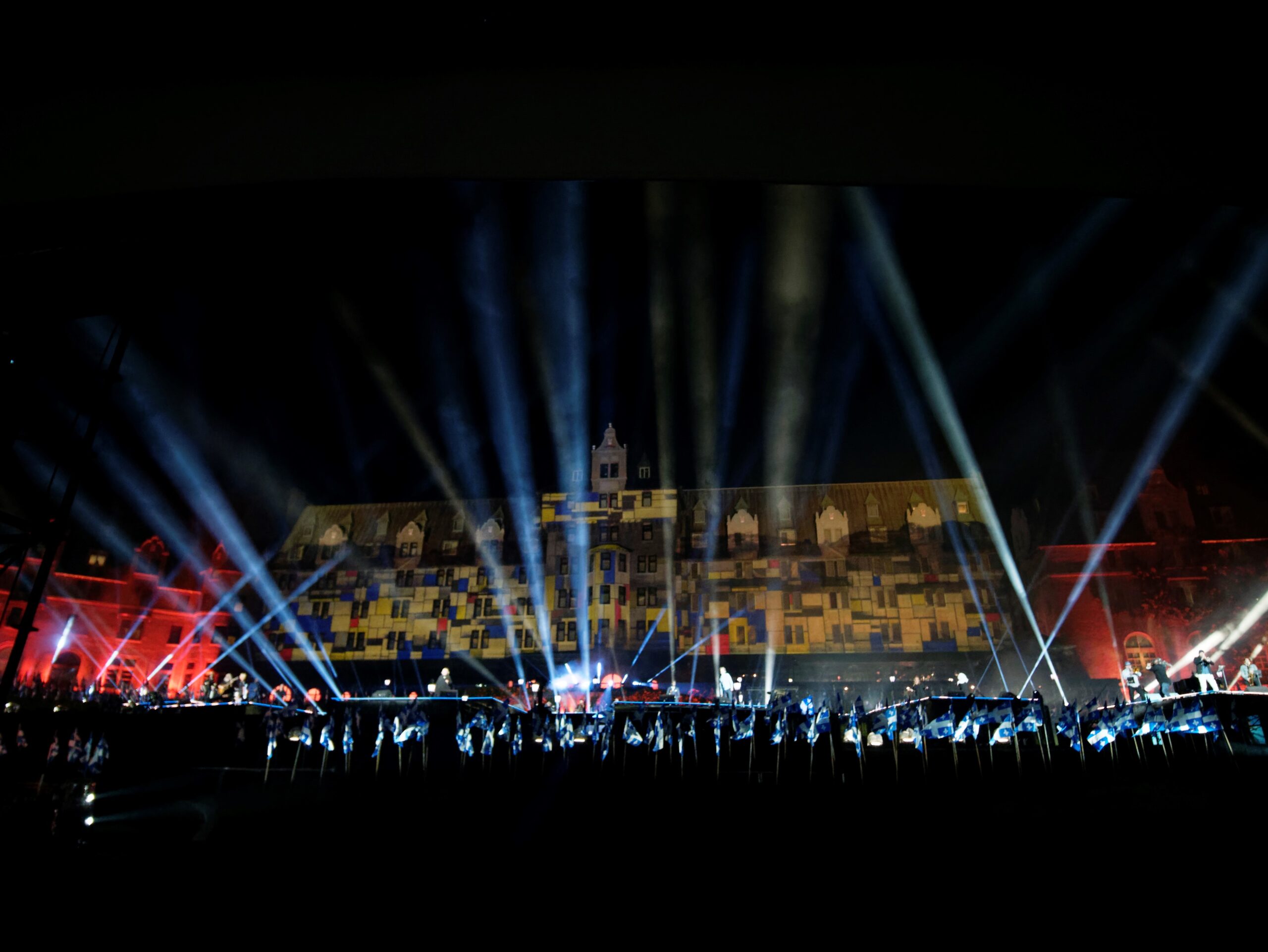 C’est face au majestueux fleuve Saint-Laurent, entourés d’une mer de fleurdelisés, que plus de 200 artistes (chanteurs, danseurs, musiciens, artistes de cirque, etc.) se sont réunis pour célébrer avec enthousiasme notre Fête nationale ! Tout au long du spectacle, les régions étaient à l’honneur, les artistes et les artisans ont rendu hommage aux grandes voix du Québec et ont su véhiculer un élan de fierté jusque dans toutes les chaumières. D’un numéro à l’autre, le Québec rayonnait sur une scène impressionnante, installée pour l’occasion dans le splendide décor de La Malbaie, avec comme toile de fond le Manoir Richelieu.